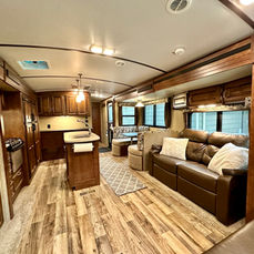 Modern Interior: Step inside this luxurious travel trailer and be greeted by a contemporary and tasteful interior design. From the sleek furnishings to the stylish decor, every detail has been thoughtfully curated to create a warm and inviting ambiance.